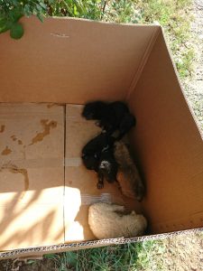 Suntem disperați, obosiți și depășiți de o grămadă de probleme, e foarte greu să ai acasă 78 de căței și 25 de pisici, suntem 3 persoane care îi îngrijim și toți avem și munca noastră din care ne câștigăm existenta. Încercăm din răsputeri să explicăm tuturor celor care ne sună sau ne scriu mesaje sa înțeleagă că nu mai putem să primim animăluțe dar probabil că nu reușim să fim convingători sau poate nesimțirea și egoismul unora este prea mare. Așa că au abandonat, fără pic de remușcare, 6 căței care abia au deschis ochii, plini de căpușe și răni și care plângeau disperați de frică, foame și sete.